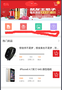 我们在点击列表中带+号的购物车时,会有一个图片多点击的购物车位置跑到右上角的购物车中,同时右上角的购物车数量增加1,实现原理很简单,就是我们常用的位移动画: