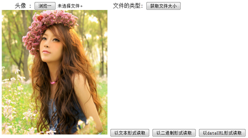 <input type="button" value="以二进制形式读取" onclick="readAsBinaryString();">