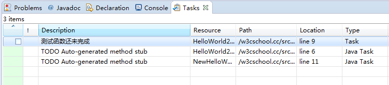 我们可以在 Java 代码中的注释添加 TODO 单词来标记一个任务,任务可以通过 Tasks(任务) 视图查看。
