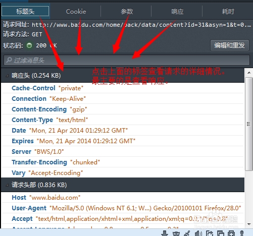 可以点击上面的标签查看请求的返回状况。