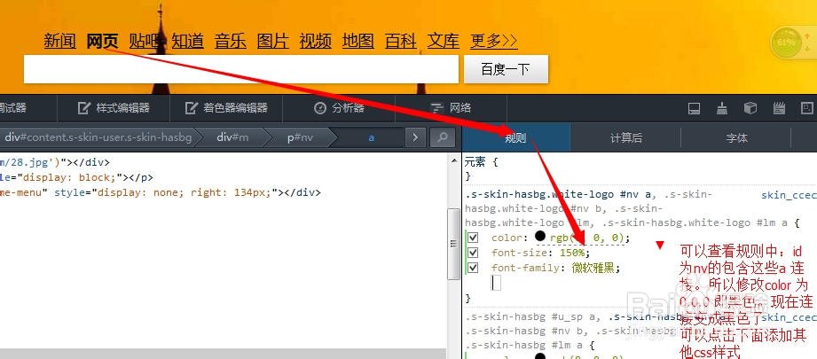 这里的调试网页主要以修改百度的首页。