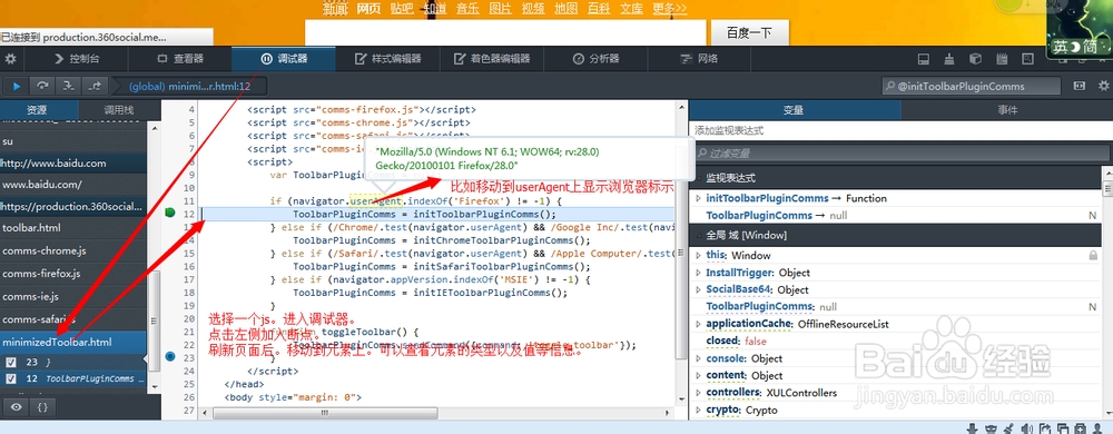 调试器可以查看网页请求的js脚本以及脚本的定义,以及脚本的变量的实时值。