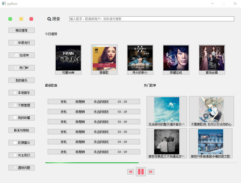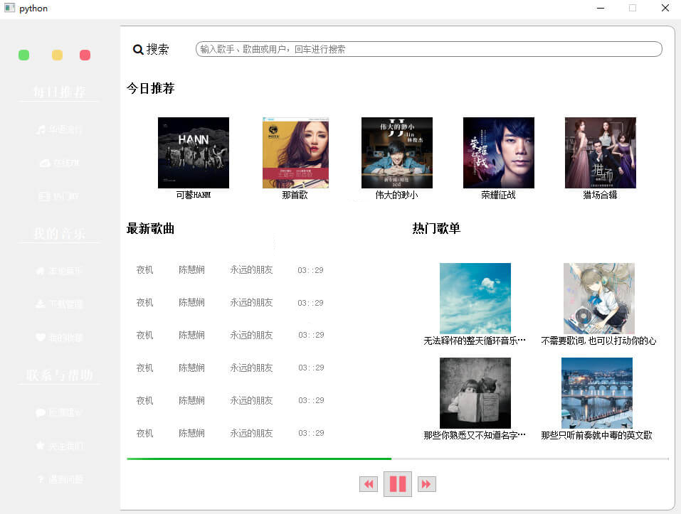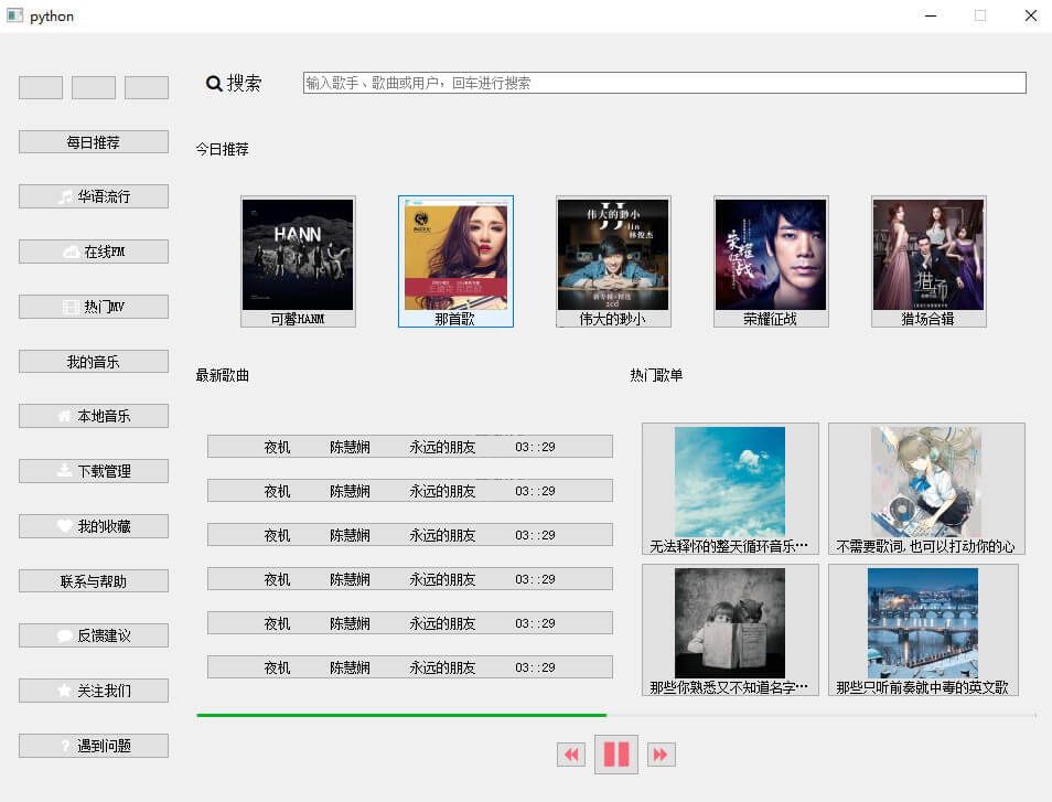 因为推荐模块和歌单模块中使用的都是QToolButton()部件,所以其样式也类似: