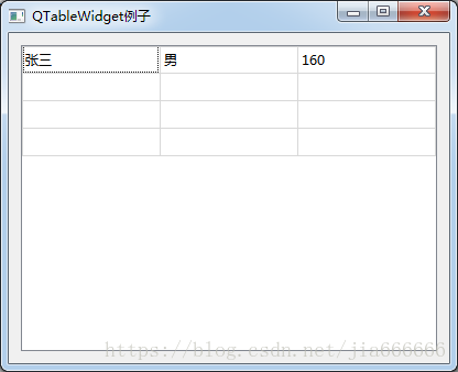 self.setWindowTitle("QTableWidget例子")