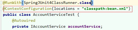 2.使用Junit提供的一个注解@Runwith()把原有的main方法替换成spring提供的,这样就可以创建容器了: