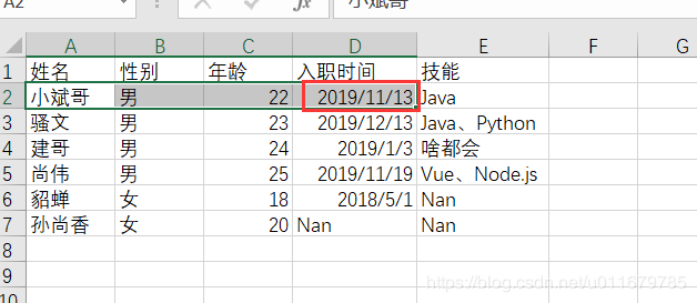 至于时间为什么是43812.0,这个是天数,可以转换成日期格式,后边我会详细写用法~
