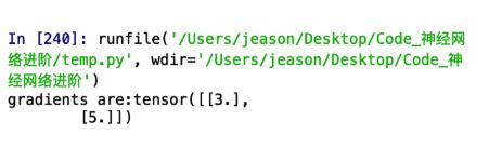 么?我是谁?我再哪?为什么就给我2个数,而且是 8 + 2 = 10 ,96 + 2 = 98 。难道都是加的 2 ?想一想,刚才咱们backward中传的参数是 [ [ 1 , 1 ] ],难道安装这个关系对应求和了?咱们换个参数来试一试,程序中只更改传入的参数为[ [ 1 , 2 ] ]: