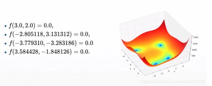 有四个全局最小解,且值都为0,这个函数常用来检验优化算法的表现如何: