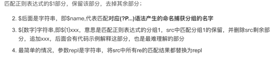 在template参数里,一个变量表示为格式如: $name 或 ${name} 的字符串,其中name是长度>0的字母、数字和下划线的序列。一个单纯的数字字符名如$1会作为捕获分组的数字索引;其他的名字对应(?P...)语法产生的命名捕获分组的名字。超出范围的数字索引、索引对应的分组未匹配到文本、正则表达式中未出现的分组名,都会被替换为空切片。
