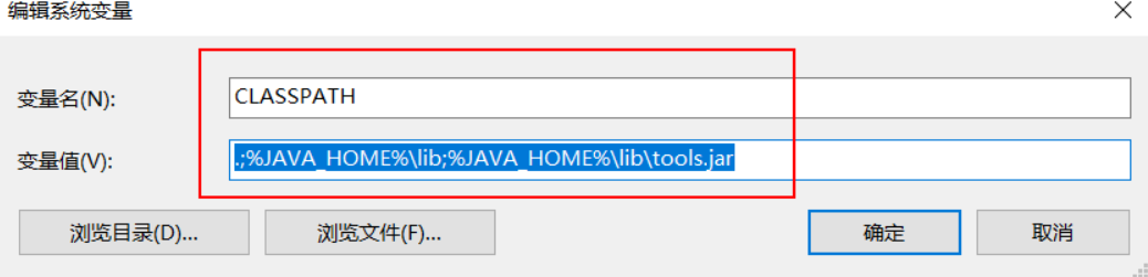新建:CLASSPATH 值:.;%JAVA_HOME%\lib;%JAVA_HOME%\lib\tools.jar