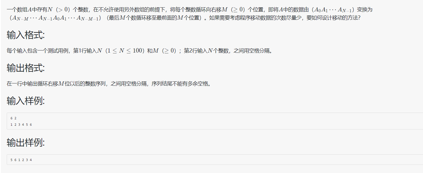 顺序,先遍历出数组中 N-M ~ N-1号元素,再遍历出0~N-M-1号元素。
