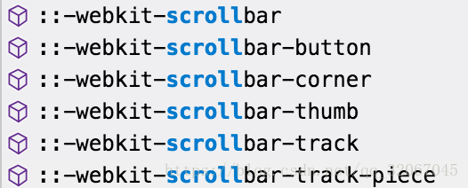 上图位置<6>:-webkit-scrollbar-track-piece 内层轨道,滚动条中间部分(除去)。