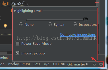 进入波浪线设置界面看看到上方有三个设置项None、Syntax、Inspections,可以拖动箭头设置。