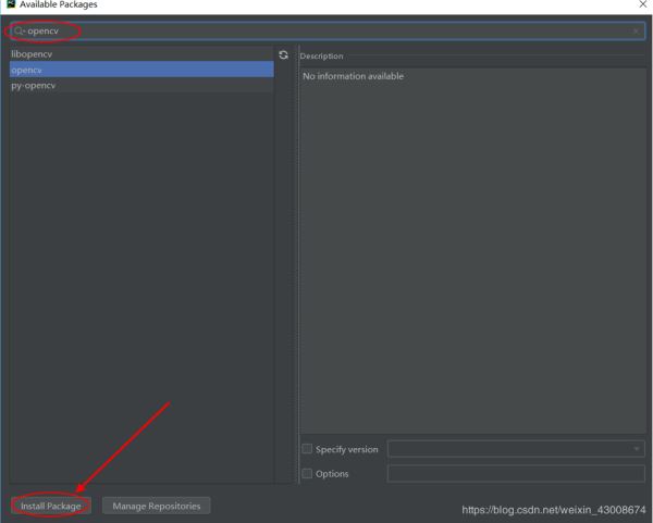 用Anaconda包管理器里面的库安装opencv,但是这个方法一个弊端就是安装的opencv最高版本只是3.4版本