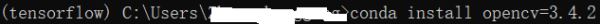 或者cmd中通过conda install opencv=3.4.2命令安装: