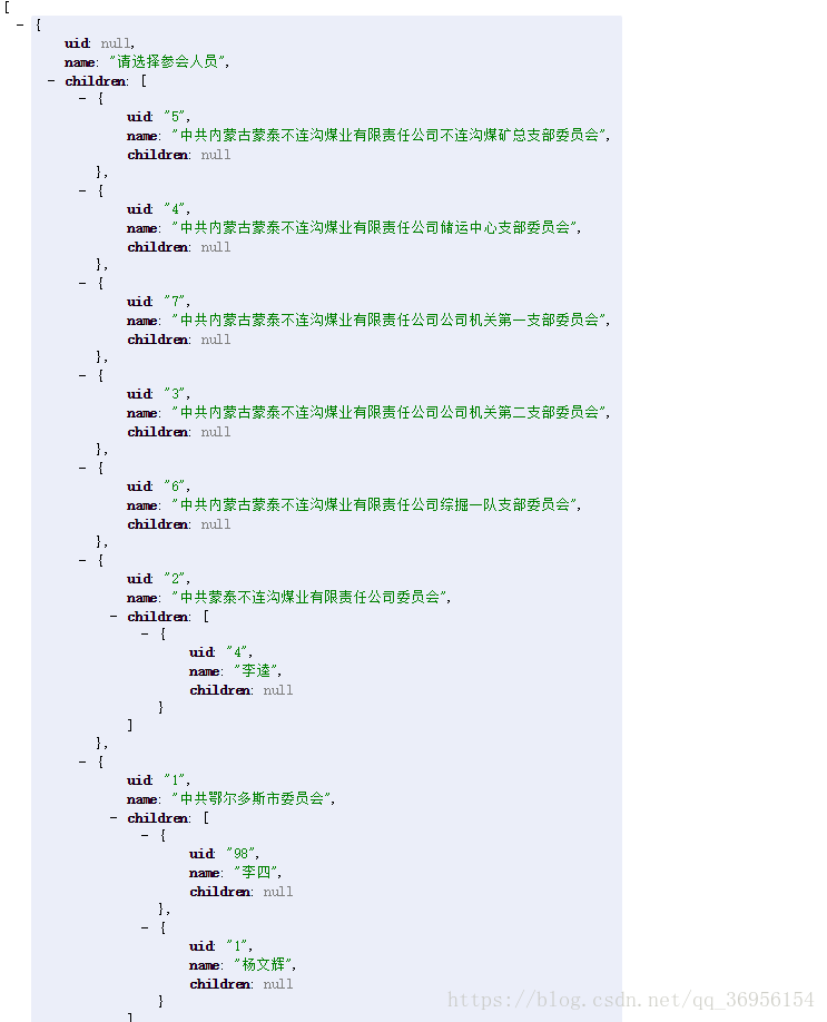 开发项目的时候遇到需要在表单中选择参会人员,根据不同部门下选择不同的人,在element-ui中有树形控件能满足这种情况,后台封装数据记录一下。