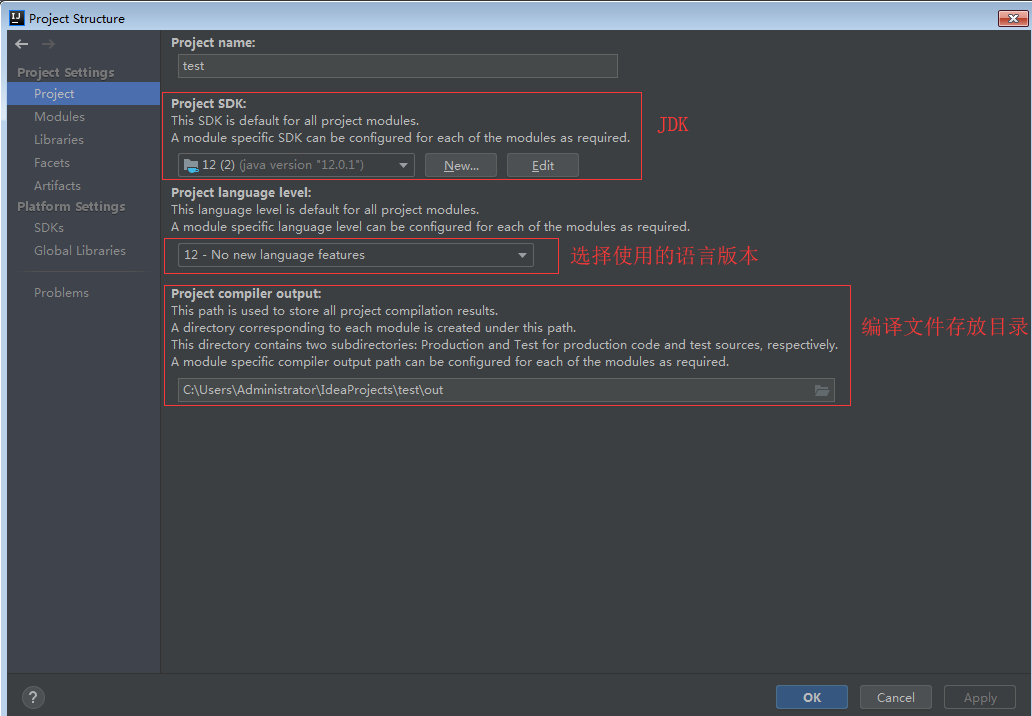 4.File-->Project Structure 里可以配置项目的一些设置。