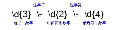 第二点是,在本地号码位的前三位和后四位数字间有可能是空格符,而不是连字号,更有胜者,或根本就没有分隔符,就是7位数字连在一起。对这几种情况,我们可以用(-|)?来解决。这个结构的正则表达式就是转换器,它能匹配上面所说的几种情况。在()能含有管道符|时,它能匹配是否含有空格符或连字符,而尾部的?元字符表示是否根本没有分隔符的情况。