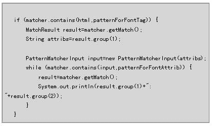 该系列方法与我们在上篇介绍的Jakarta-ORO中的MatchResult .group()方法类似(有关Jakarta-ORO请参考上篇的内容),都是要返回与组匹配的子串内容,下面代码将很好解释其用法: