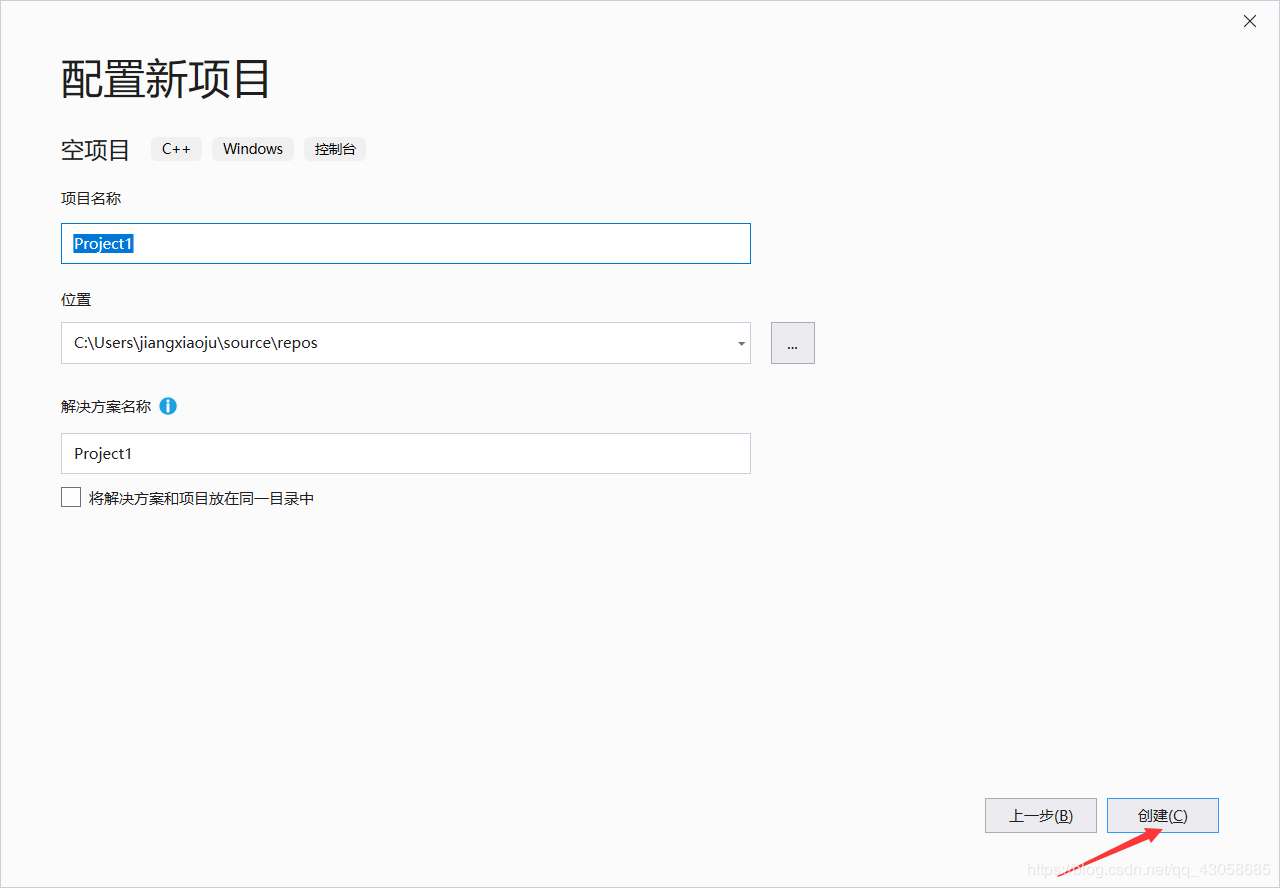 选择创建一个空项目。这里虽然是c++语言,但可以兼容c语言的,所以不用担心。