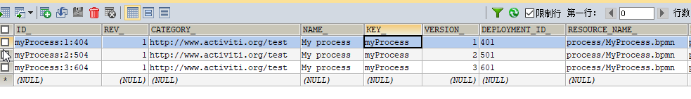 当表中存在KEY_字段相同的记录时,activiti会选择版本号 VERSION_最新的一条流程定义记录来开启流程