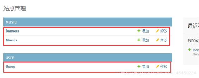 from django.contrib import admin #引入要注册的模型 from music.models import Music from music.models import Banner from user.models import User # Register your models here.注册 admin.site.register(Music) admin.site.register(Banner) admin.site.register(User)