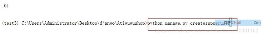 接下来就是在操作控制台中输入命令创建超级管理员账号,命令是python manage.py createsupperuser