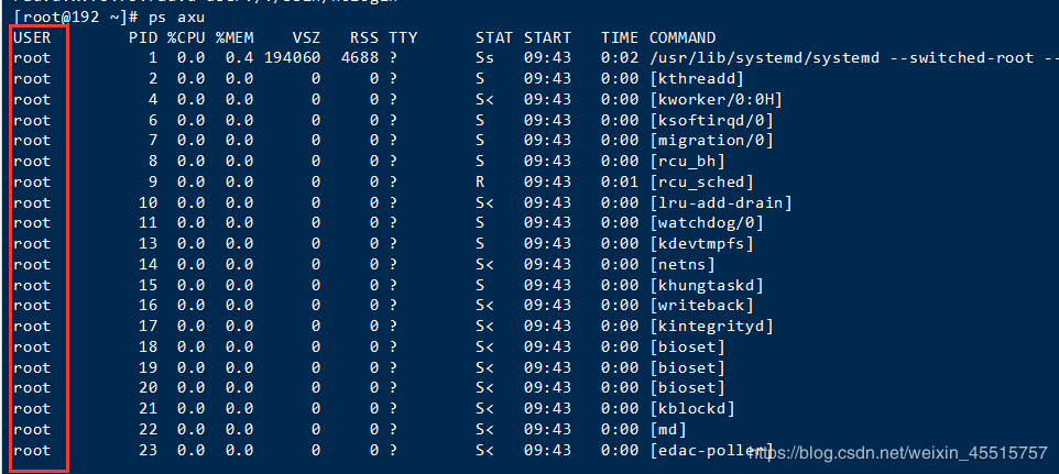 [root@192 ~]# ps axu