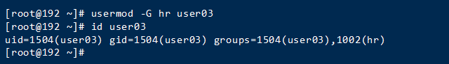 [root@192 ~]# usermod -G hr user03