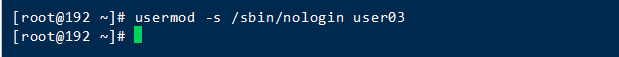 [root@192 ~]# usermod -s /sbin/nologin user03