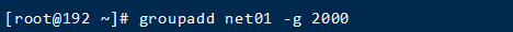 [root@192 ~]# groupadd net01 -g 2000 //添加组net01,并指定gid 2000