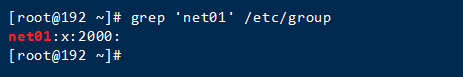 [root@192 ~]# grep ‘net01' /etc/group //查看/etc/group中组net01信息