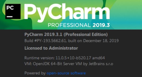 查看有效期的步骤为点击:Help→ About这里可以看到你的pycharm的版本号、许可来源、有效期、以及一些环境