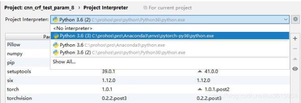 在interpreter列表中选择刚刚添加的interpreter。如果需要对刚添加的interpreter改名,比如把python 3.6 (3)改成pytorch-py36,则点击齿轮按钮,点击show all,里面可以改名。