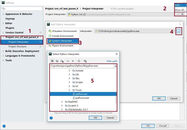 在新建工程的时候选择existing interpreter,指定之前安装的python.exe即可。(即~/python/python367)对于已经存在的工程,可以按如下步骤操作(如果project interpreter里面有我们要的python.exe,就不需要再add了)