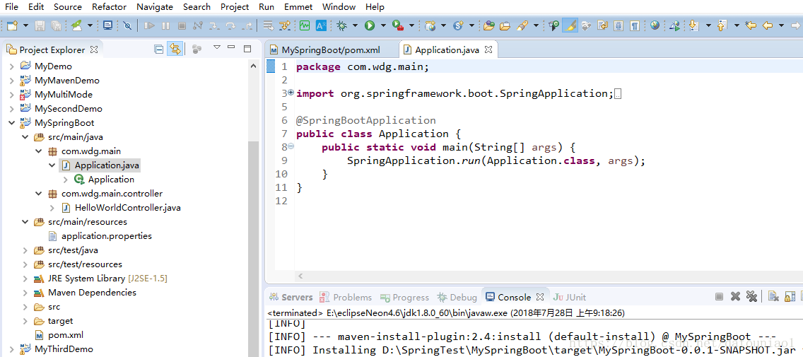 最近在Ecplise上面写了一个简单的Spring Boot的测试项目,Spring Boot里面是有主函数的: