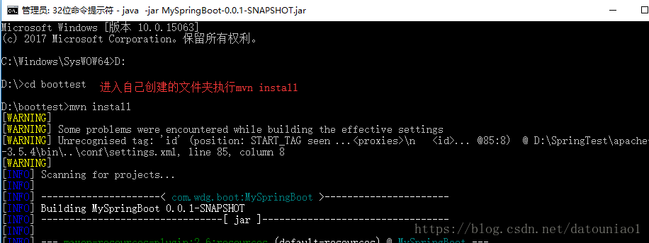 第三步:进入自己创建的文件夹,然后执行mvn install