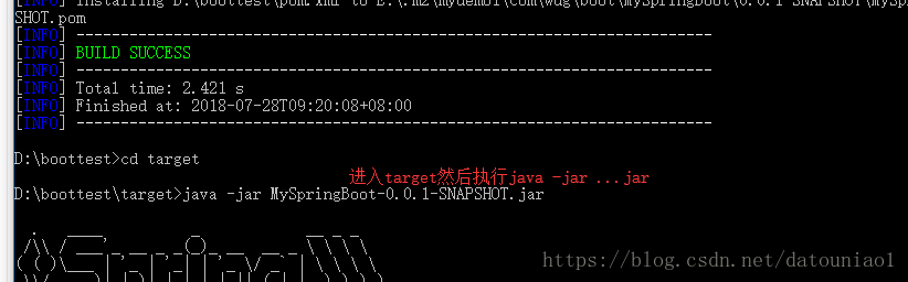 其实在启动的过程中也不是一帆风顺的,期间在执行最后一步:java -jar  MySpringBoot-0.0.1-SNAPSHOT.jar的时候遇到的问题是: