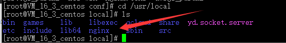 安装完成之后,我们进入/usr/local目录,能找到已安装的nginx目录。(之前的安装包可以删了)