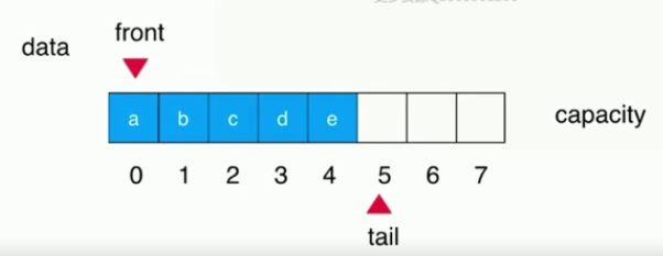 这样数组就已经满了(tail+1==front 队列满),开始出发扩容操作。【capacity中,浪费一个空间】。
