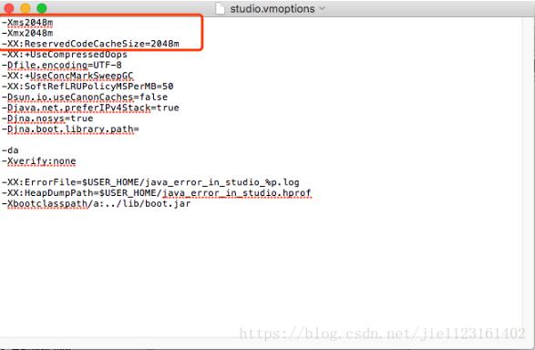 以文本形式打开studio.vmoptions文件,会看到如下图