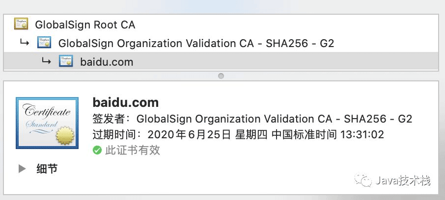2.判断证书来源是否合法。每份签发证书都可以根据验证链查找到对应的根证书,操作系统、浏览器会在本地存储权威机构的根证书,利用本地根证书可以对对应机构签发证书完成来源验证;