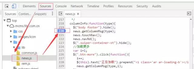 打开Chrome开发者工具;点击进入Sources标签页,在页面的左侧就能看到JS代码的目录;找到需要设置断点的源文件,在需要中断的哪行代码左侧单击鼠标左键,就可以设置断点,如果你的代码是uglify过的,则需导入相应的source-map来映射源码。刷新页面(如果设置断点的位置是一个事件处理函数,则直接触发这个事件即可),代码运行到断点处的时候,程序就会挂起,这时候用鼠标hover就可以查看当前各个变量的数值,并以此判断程序是否正常运行了。