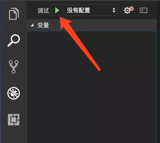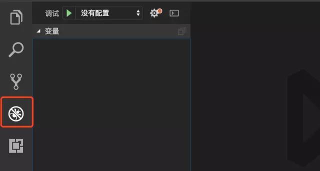1.进入VScode界面,点击界面左边的第四个类似虫子的按钮,进入调试界面:
