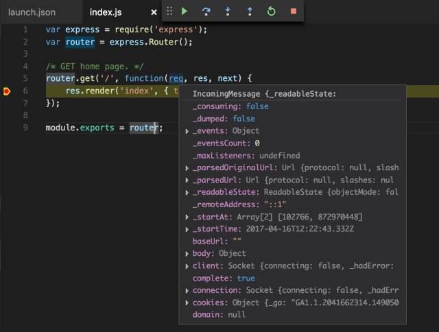 实际上,许多IDE都集成了Debug的功能,包括较新版本的WebStorm就对Node.js调试支持得很好。