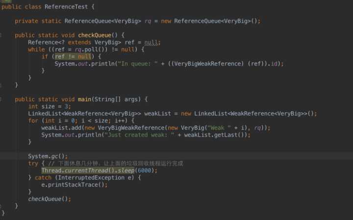软引用可以和一个引用队列(ReferenceQueue)联合使用,如果软引用所引用的对象被垃圾回收器回收,Java虚拟机就会把这个软引用加入到与之关联的引用队列中。