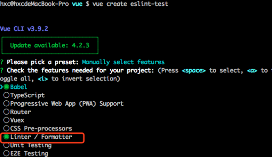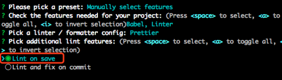 下一步选择Lint on save (在编辑保存之后根据对代码格式进行检测)