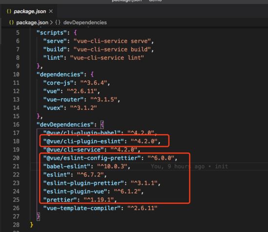 创建完在package.json里面可看到和eslint与prettier相关的依赖