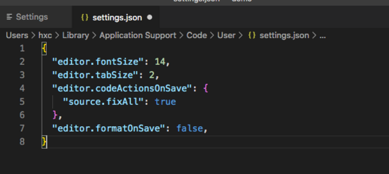 添加以下配置,使编辑器在保存时自动eslint规则格式化
