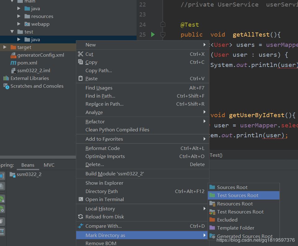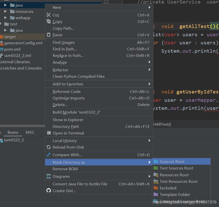 因为我这是SSM框架所以三个文件夹需要标记